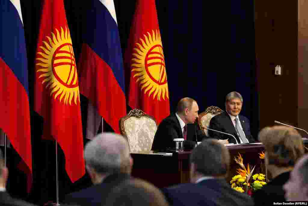 Президент России Владимир Путин прибыл в Кыргызстан. В аэропорту «Манас» его встретил премьер-министр Кыргызстана Сооронбай Жээнбеков. В госрезиденции «Ала-Арча» прошла встреча в узком формате президентов Кыргызстана и России.