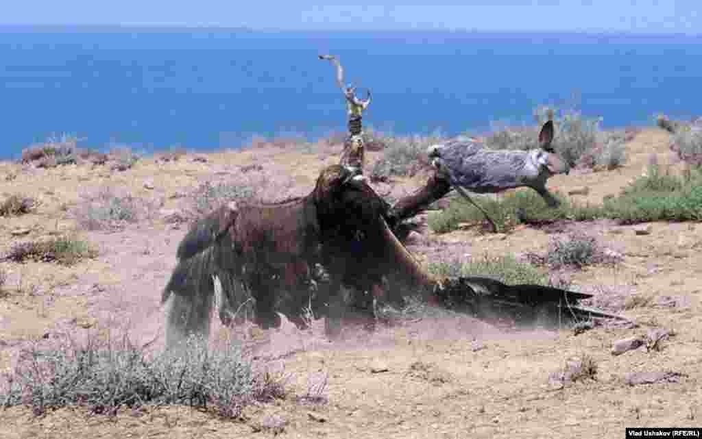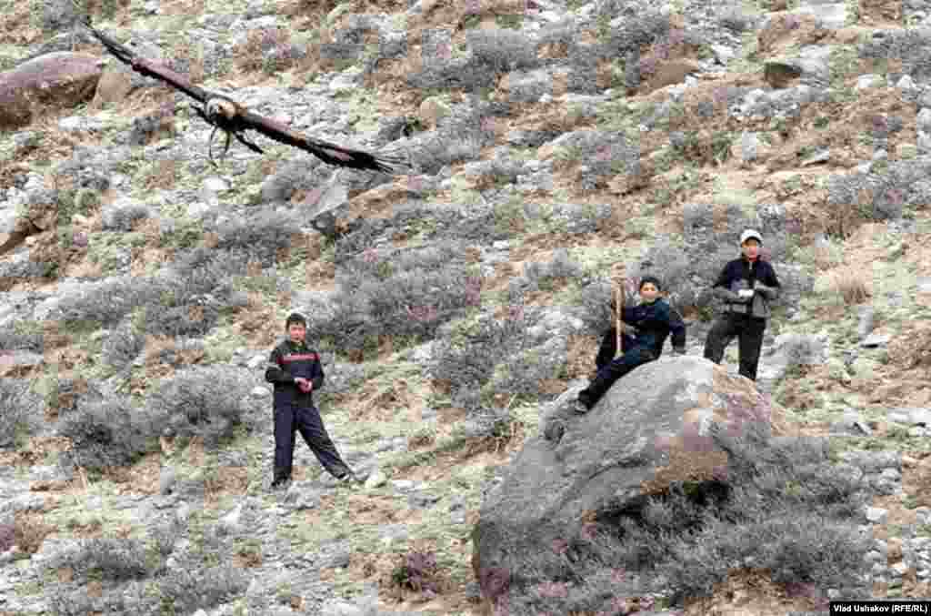 Кочевая традиция охоты с ловчими птицами уходят своими корнями в древнейшую историю, о чем свидетельствуют наскальные изображения. Например, в долине Саймалуу-Таш. "Азаттык", Кыргызская служба РСЕ\РС
